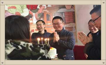 主題討論結(jié)束后,參會(huì)成員在農(nóng)家小院給生產(chǎn)總監(jiān)姜華明先生、生技部副經(jīng)理兼車間主任李云先生共慶生日。大家唱起生日之歌,送上祝福!在兩位壽星的許愿下,在同事們歡聲笑語中共享簡單、快樂的生日宴!